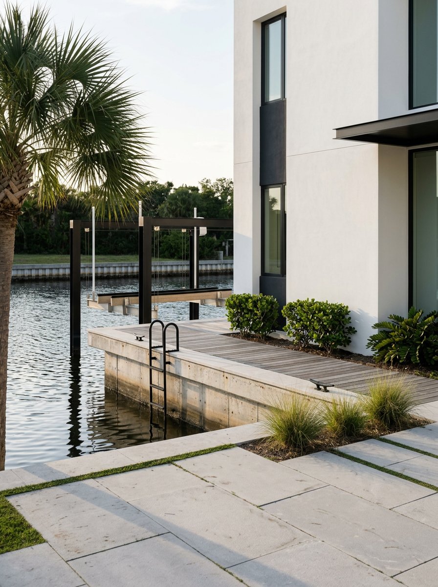 Consider shoreline conditions such as seawalls, bulkheads, or other armoring. Factor in future maintenance and long-term resilience, including the effects of sea level rise and storm surge.